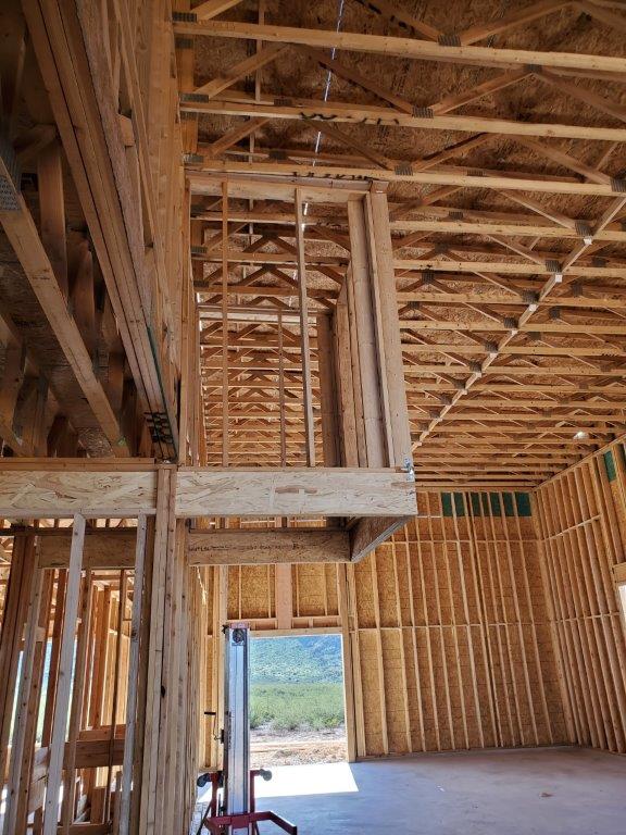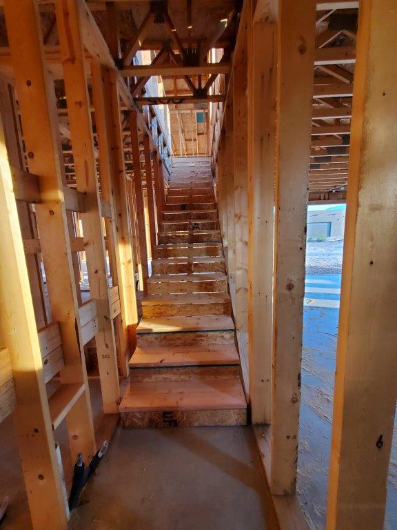 But what is missing from this picture? Stairs! We still couldn’t get up to the second floor without hauling a ladder over to the house. The stairs had been promised days ago. So I called the builder who was aware of the missing stairs. I’m not sure what deal he struck with the framer, but the next working day we had stairs!
